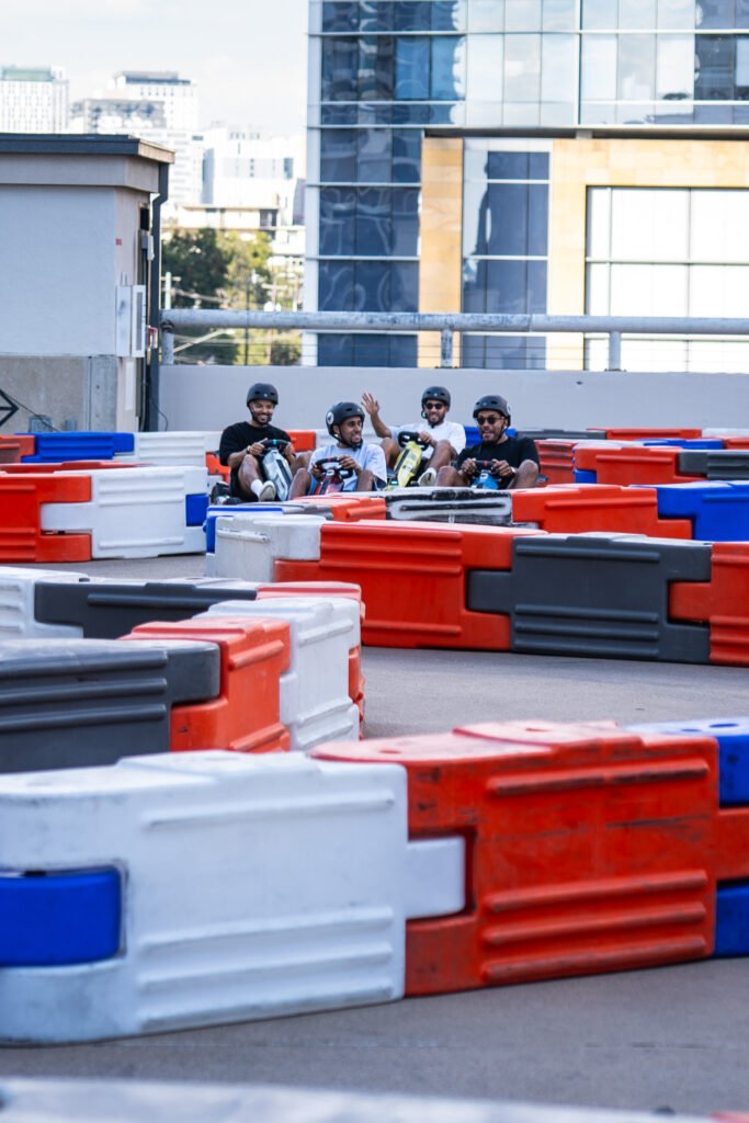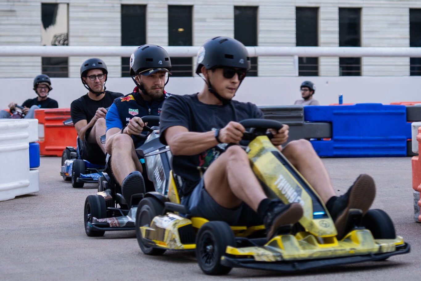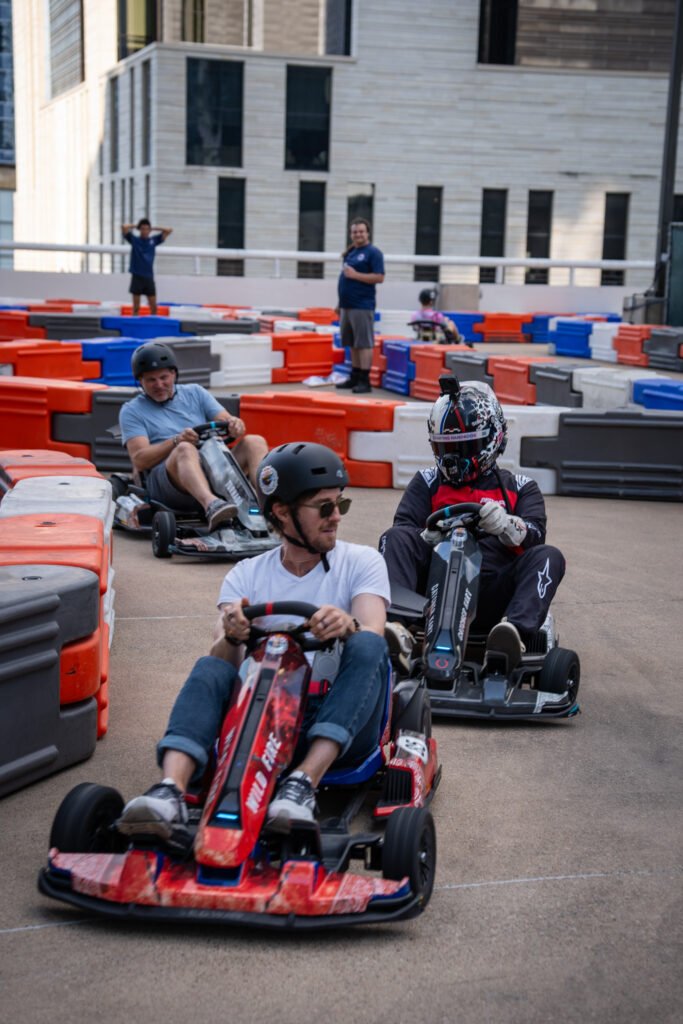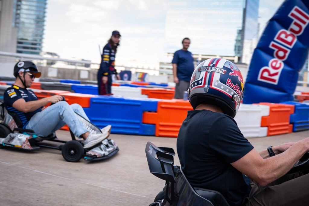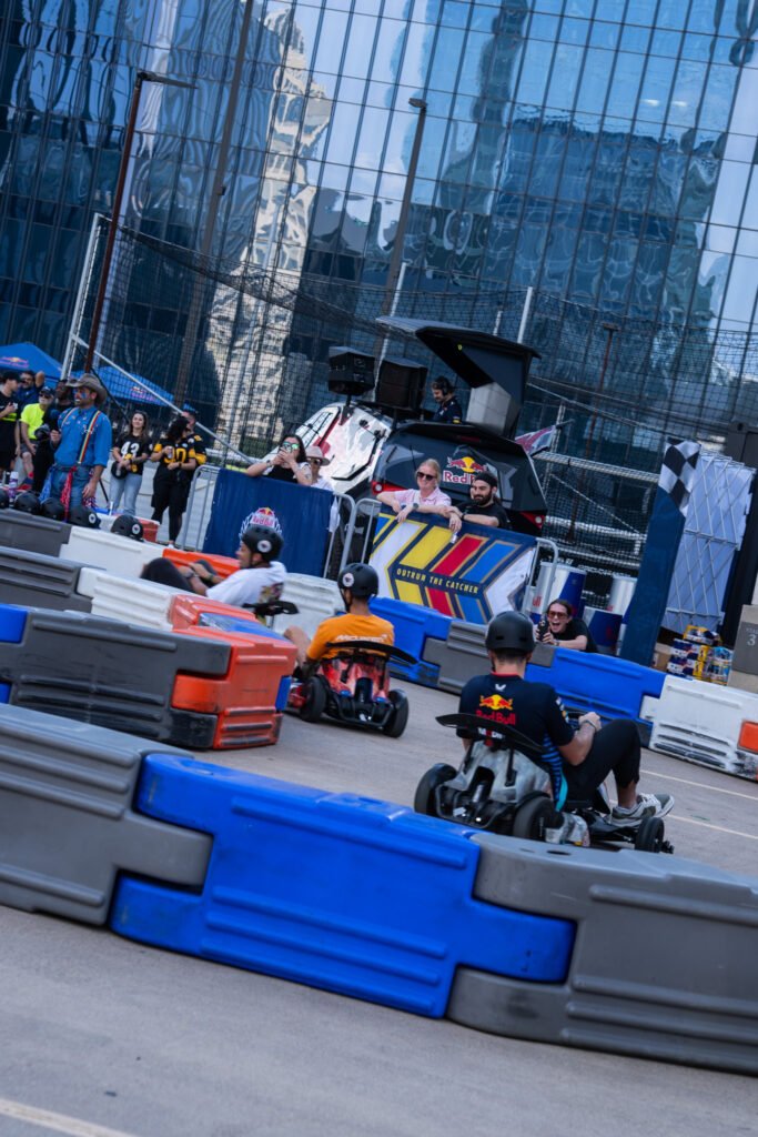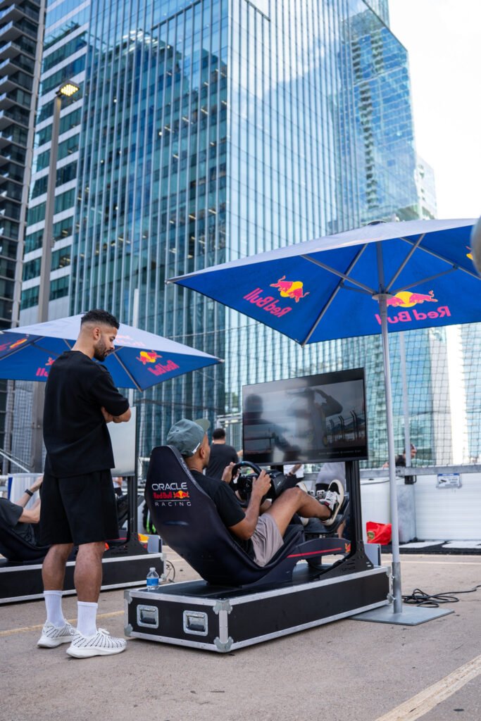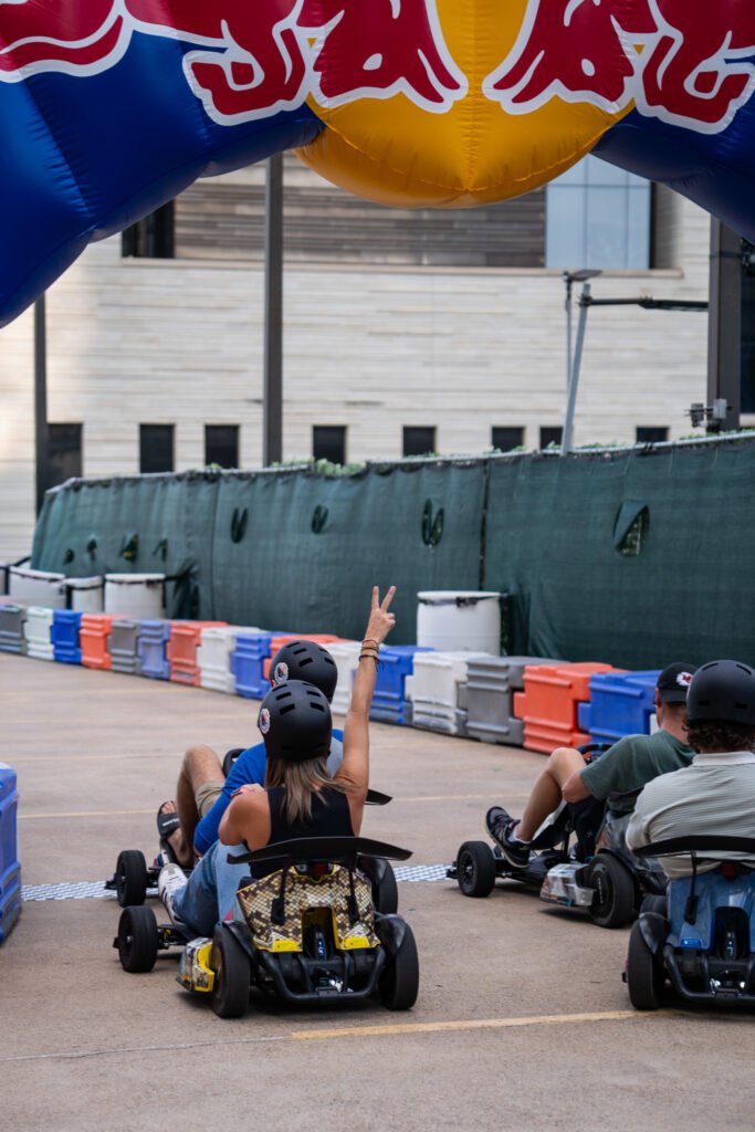 For Formula 1, Red Bull set up a go kart track on the rooftop of Vanta Athletics along with a DJ, two race driving simulators, their Formula 1 car and of course tons of free Red Bull.