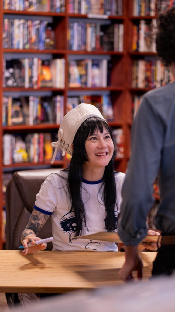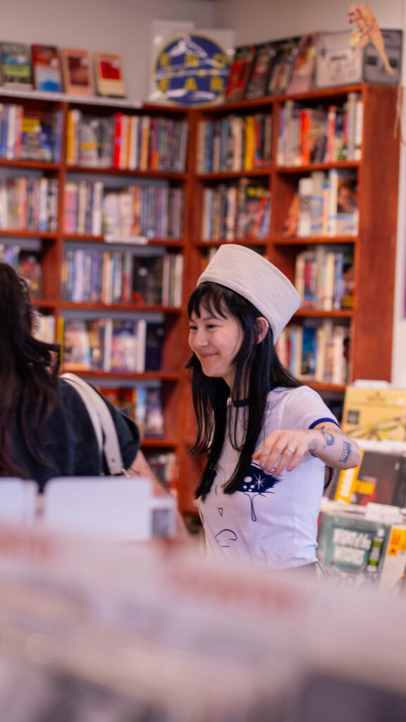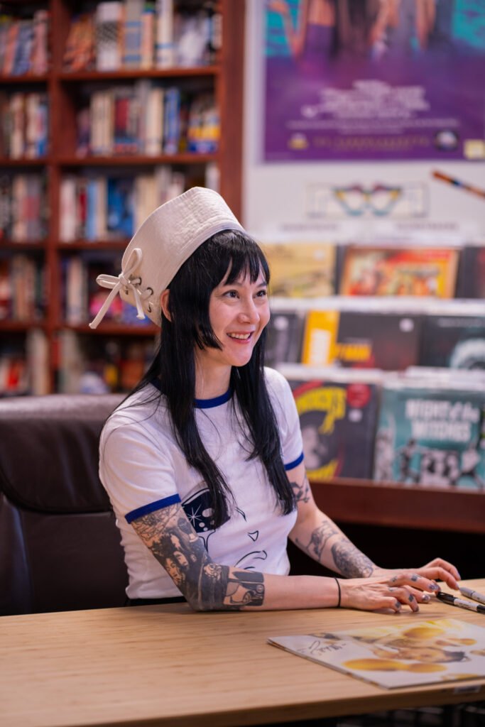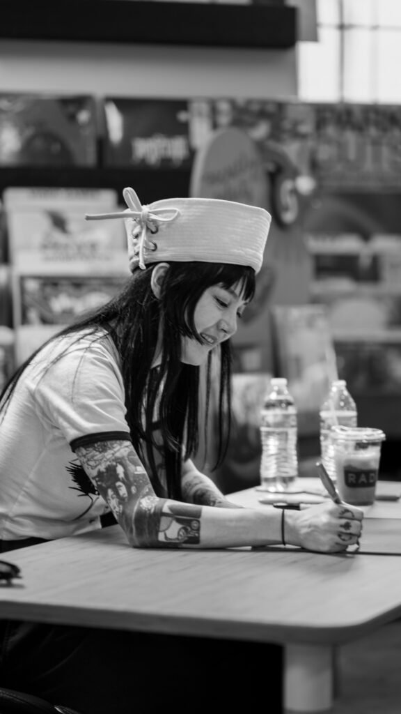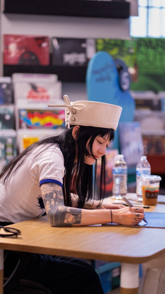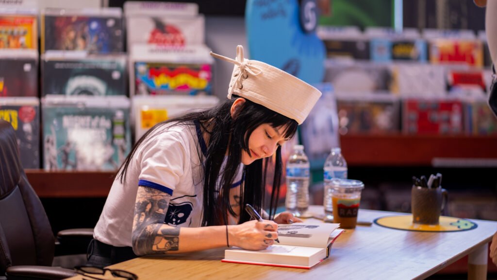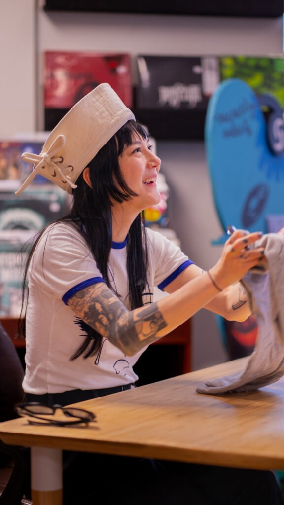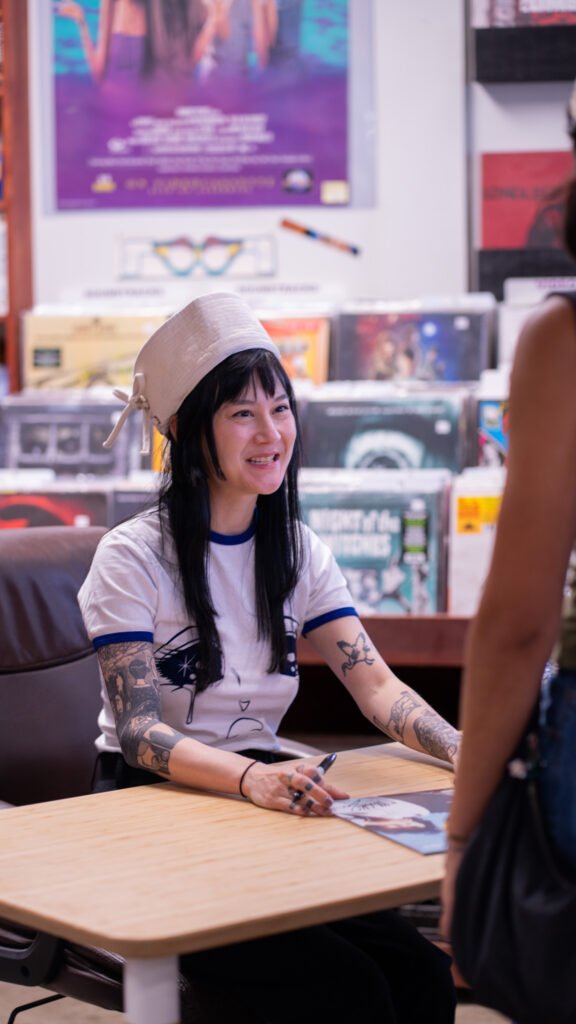 Michelle Zauner of Japanese Breakfast spent Tuesday afternoon meeting fans and signing items ahead of the third night of the Melancholy Tour for her new album “For Melancholy Brunettes (& sad women). On April 22nd, Zauner took photos at End of an Ear and signed anything from copies of her book, “Crying in H Mart” and vinyl records of her albums to t-shirts and the plastic sleeve for a vinyl record.